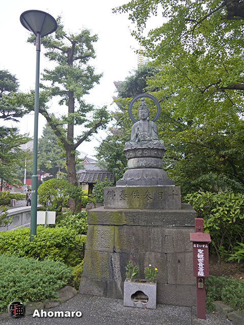 正岡子規句碑「観音で雨に逢ひけり花盛」