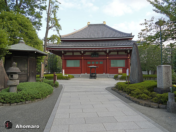 正岡子規句碑「観音で雨に逢ひけり花盛」