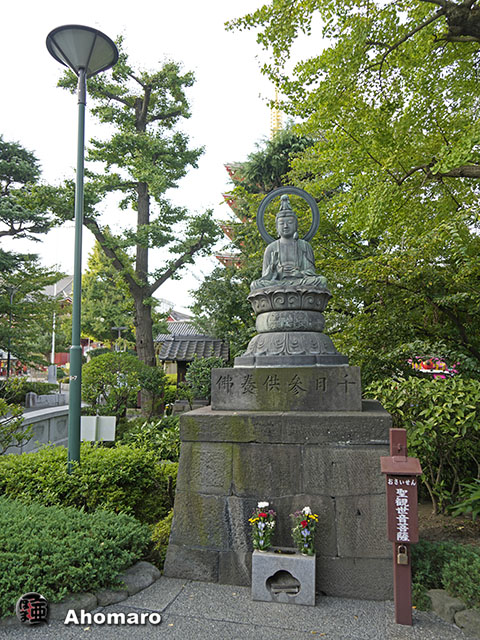 正岡子規句碑「観音で雨に逢ひけり花盛」