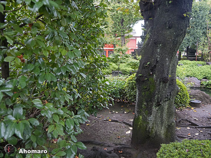 正岡子規句碑「観音で雨に逢ひけり花盛」