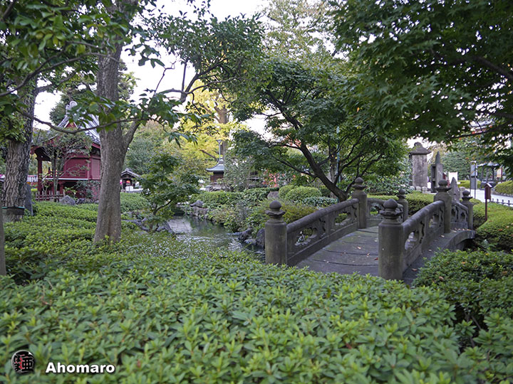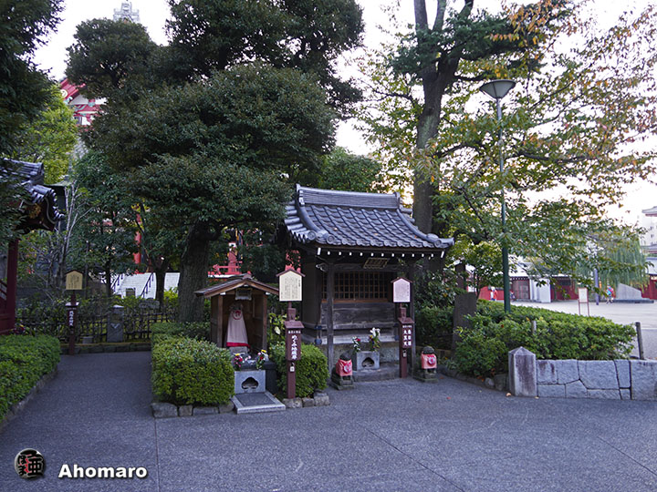正岡子規句碑「観音で雨に逢ひけり花盛」