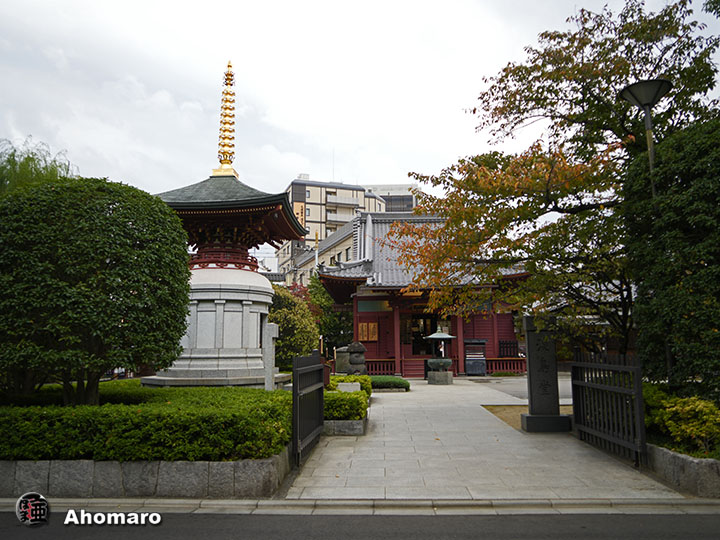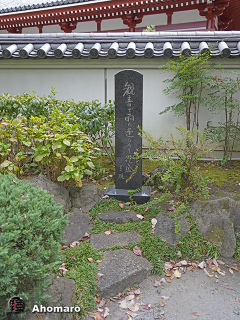 正岡子規句碑「観音で雨に逢ひけり花盛」