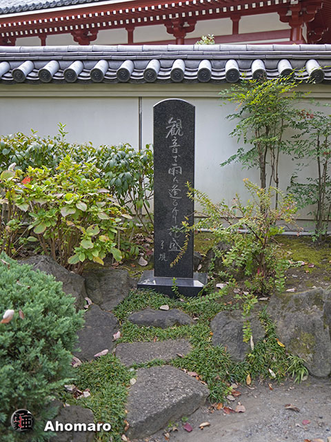 正岡子規句碑「観音で雨に逢ひけり花盛」