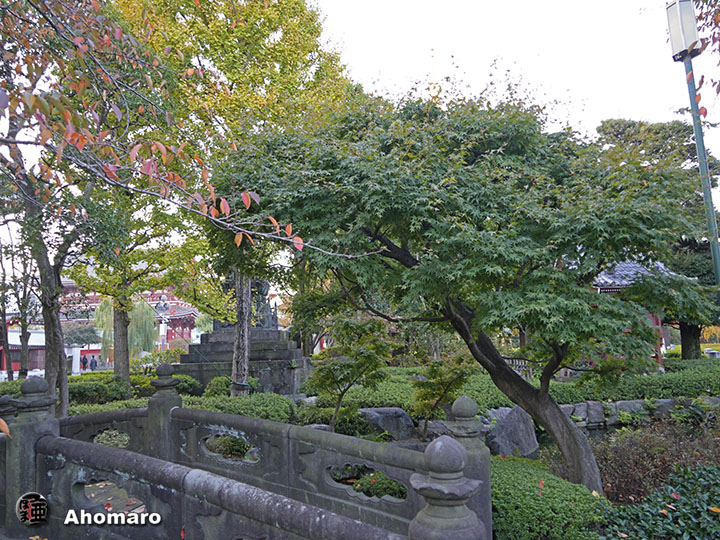 正岡子規句碑「観音で雨に逢ひけり花盛」