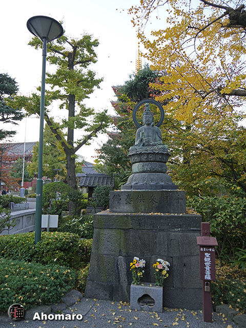 正岡子規句碑「観音で雨に逢ひけり花盛」