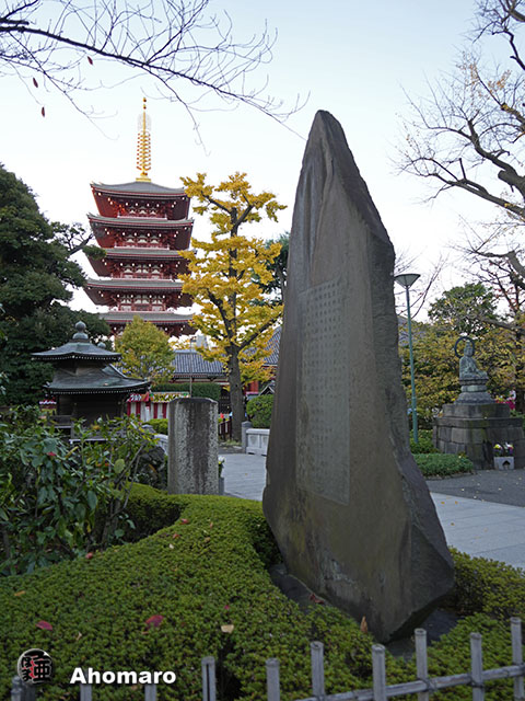 正岡子規句碑「観音で雨に逢ひけり花盛」