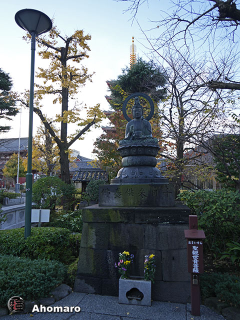 正岡子規句碑「観音で雨に逢ひけり花盛」