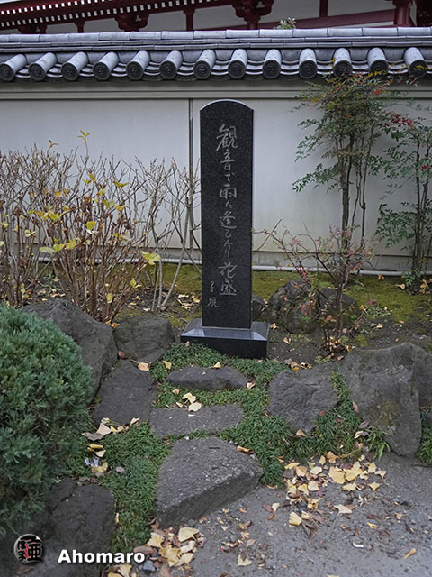 正岡子規句碑「観音で雨に逢ひけり花盛」