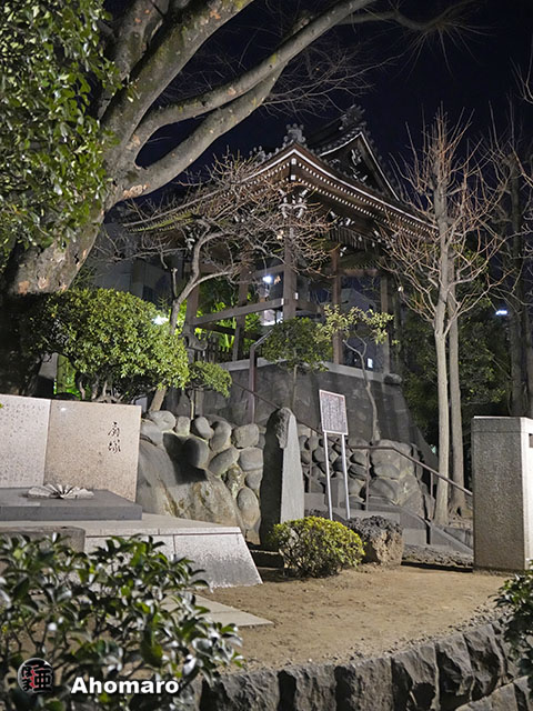 正岡子規句碑「観音で雨に逢ひけり花盛」
