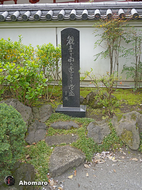 正岡子規句碑「観音で雨に逢ひけり花盛」