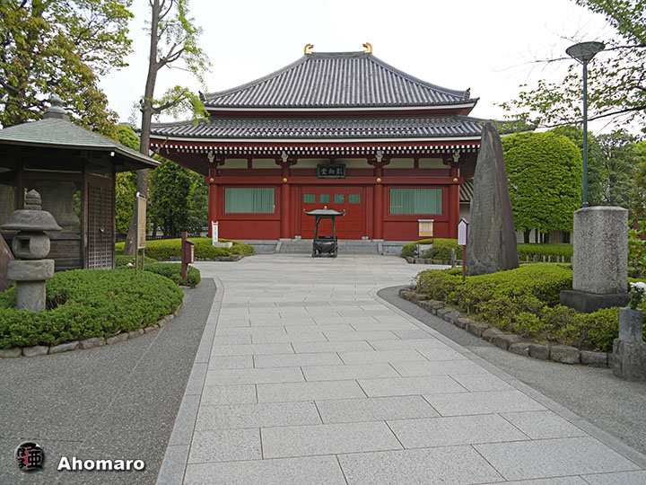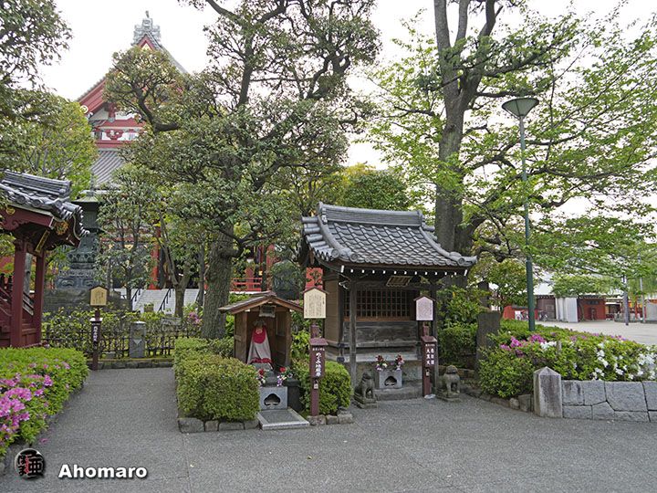 正岡子規句碑「観音で雨に逢ひけり花盛」