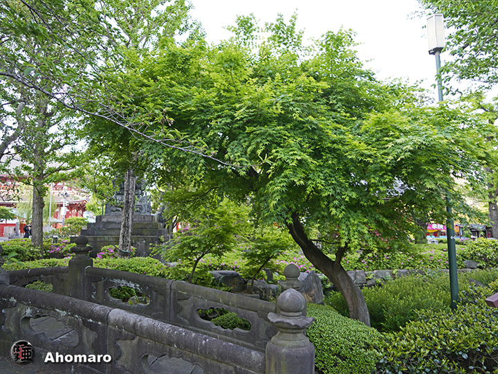 正岡子規句碑「観音で雨に逢ひけり花盛」