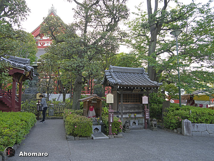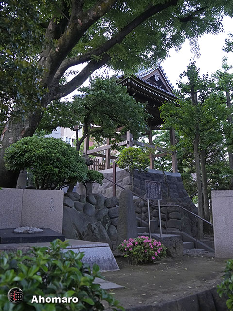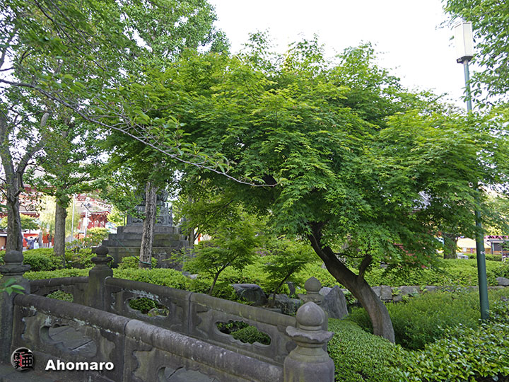 正岡子規句碑「観音で雨に逢ひけり花盛」