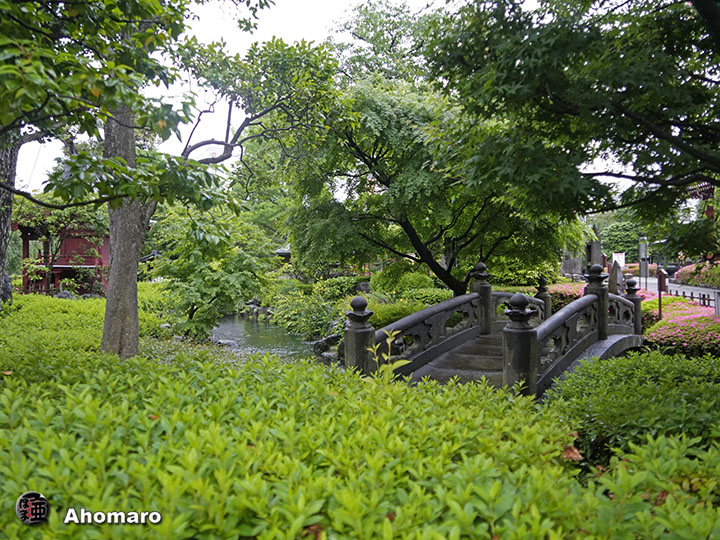 正岡子規句碑「観音で雨に逢ひけり花盛」