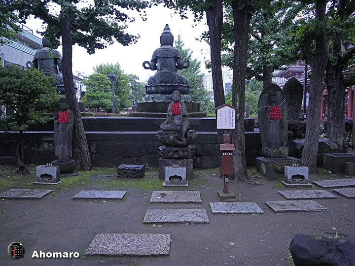 正岡子規句碑「観音で雨に逢ひけり花盛」
