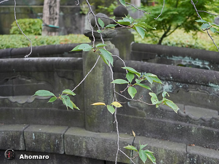 正岡子規句碑「観音で雨に逢ひけり花盛」