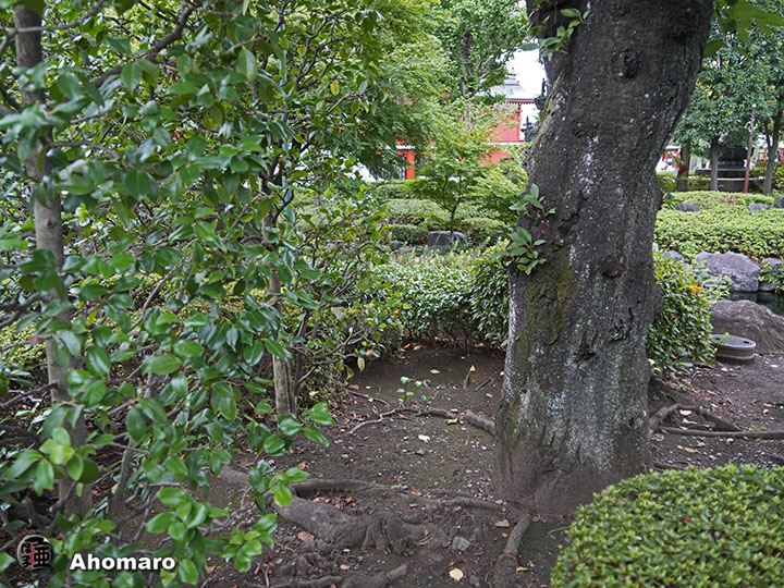 正岡子規句碑「観音で雨に逢ひけり花盛」