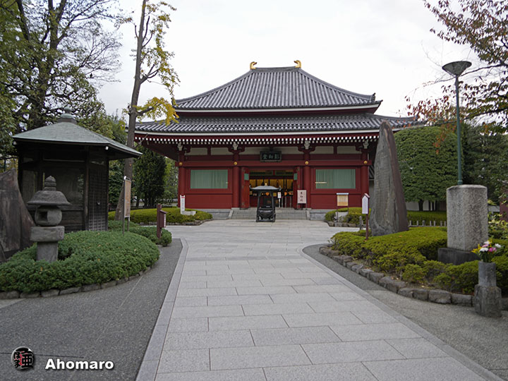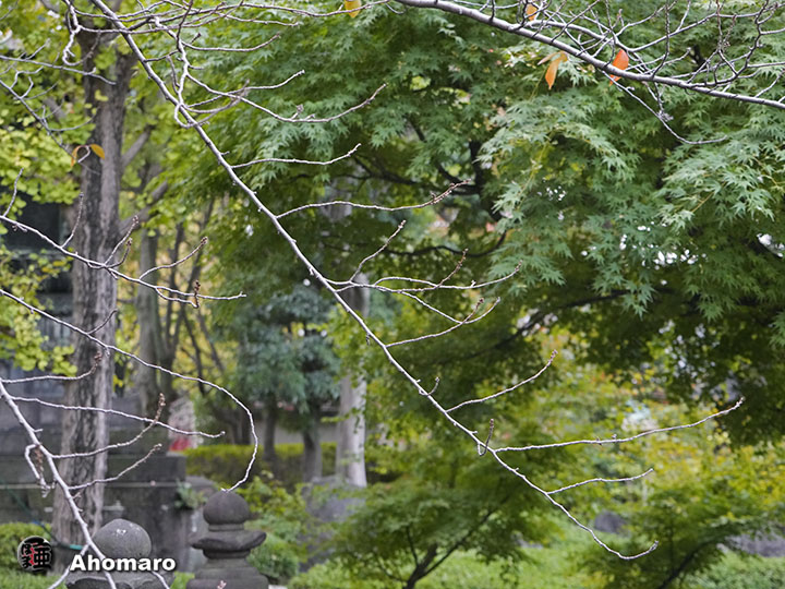 正岡子規句碑「観音で雨に逢ひけり花盛」