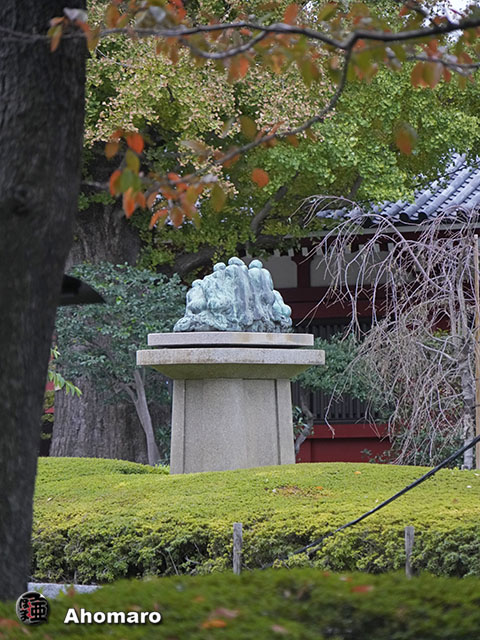添田唖蝉坊と息子の添田知道の筆塚。人面石「唖蝉坊君」は後ろに移動されてしまいました。