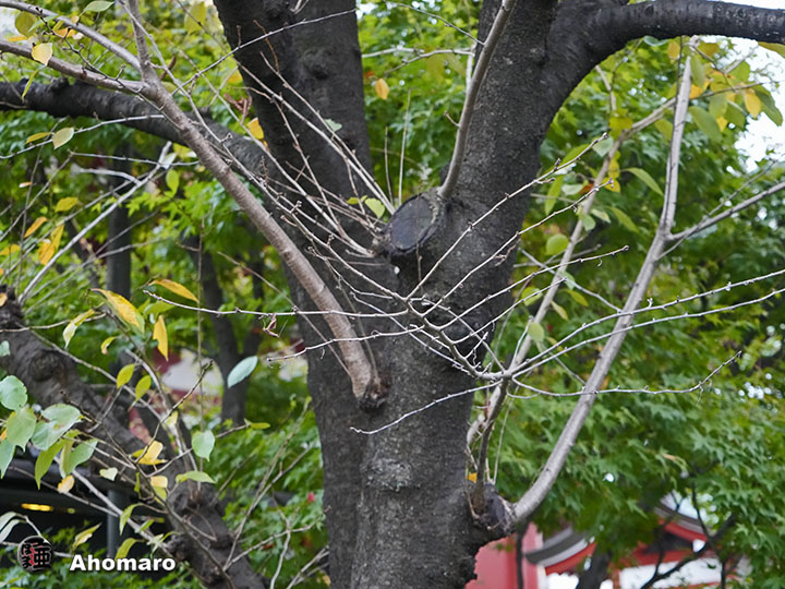 正岡子規句碑「観音で雨に逢ひけり花盛」