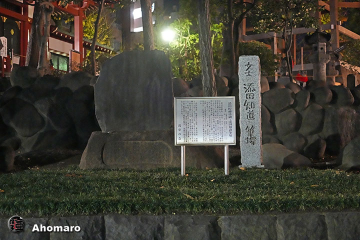 添田唖蝉坊と息子の添田知道の筆塚。人面石「唖蝉坊君」は後ろに移動されてしまいました。