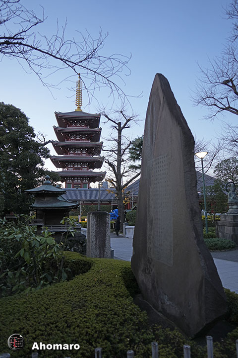 正岡子規句碑「観音で雨に逢ひけり花盛」
