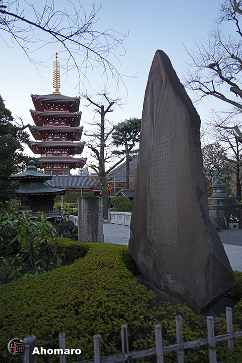 正岡子規句碑「観音で雨に逢ひけり花盛」