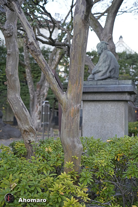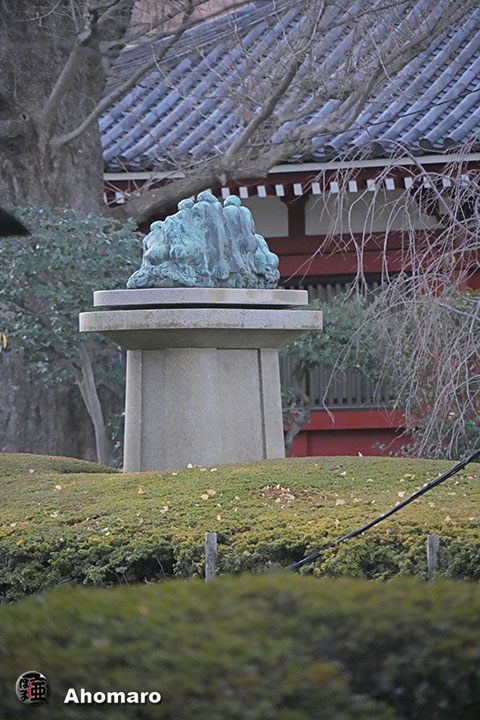 添田唖蝉坊と息子の添田知道の筆塚。人面石「唖蝉坊君」は後ろに移動されてしまいました。