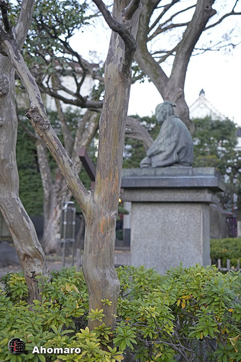 添田唖蝉坊と息子の添田知道の筆塚。人面石「唖蝉坊君」は後ろに移動されてしまいました。