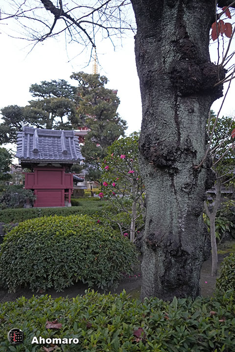 正岡子規句碑「観音で雨に逢ひけり花盛」