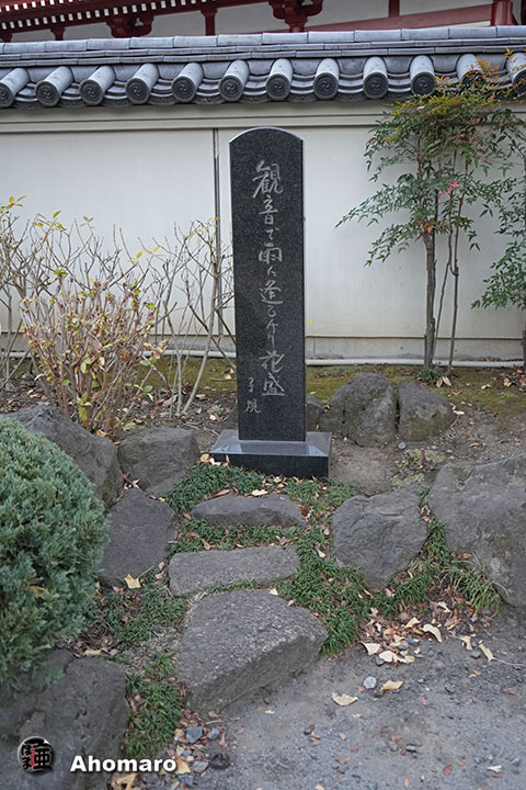 正岡子規句碑「観音で雨に逢ひけり花盛」
