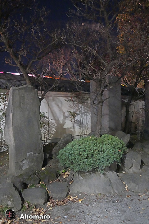正岡子規句碑「観音で雨に逢ひけり花盛」