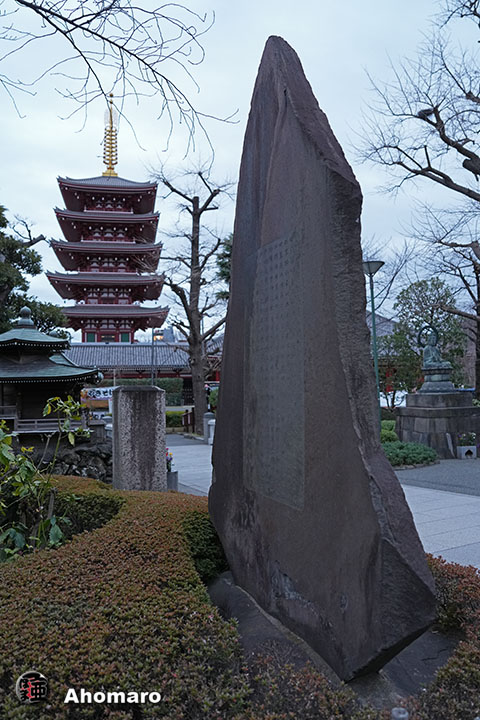 正岡子規句碑「観音で雨に逢ひけり花盛」