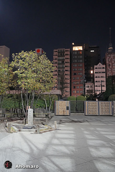 添田唖蝉坊と息子の添田知道の筆塚。人面石「唖蝉坊君」は後ろに移動されてしまいました。