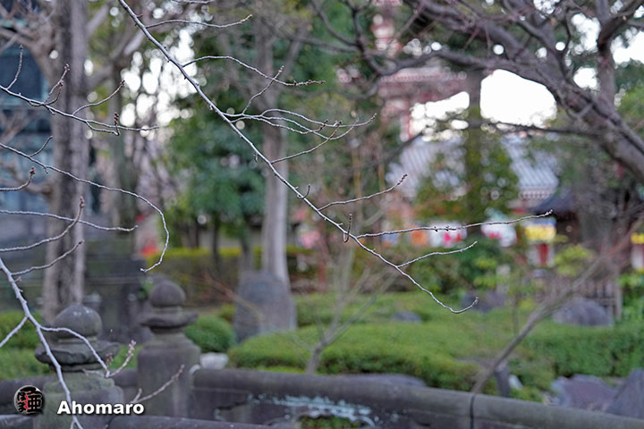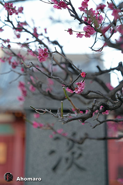 正岡子規句碑「観音で雨に逢ひけり花盛」