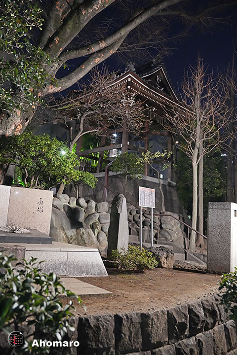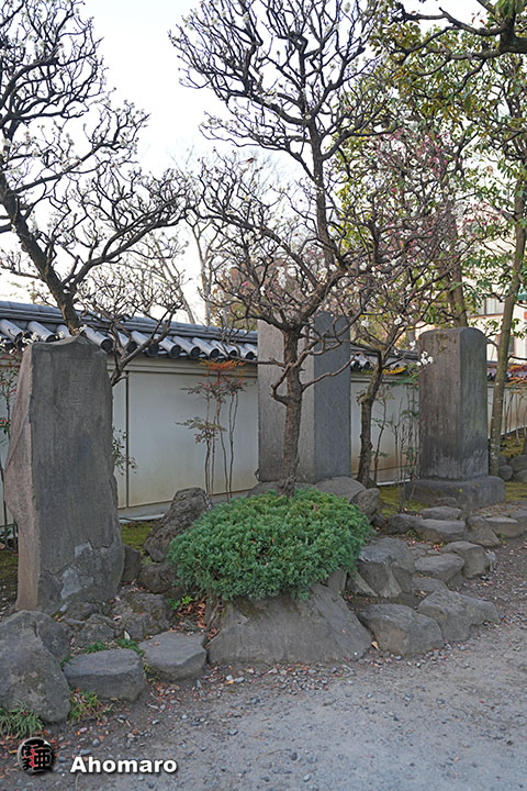 添田唖蝉坊と息子の添田知道の筆塚。人面石「唖蝉坊君」は後ろに移動されてしまいました。