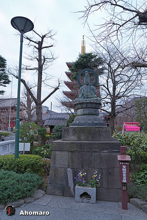 正岡子規句碑「観音で雨に逢ひけり花盛」