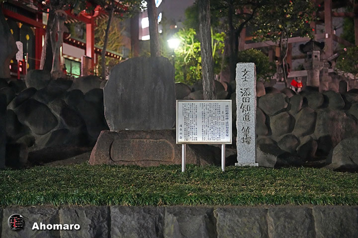 添田唖蝉坊と息子の添田知道の筆塚。人面石「唖蝉坊君」は後ろに移動されてしまいました。