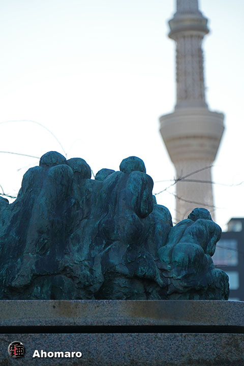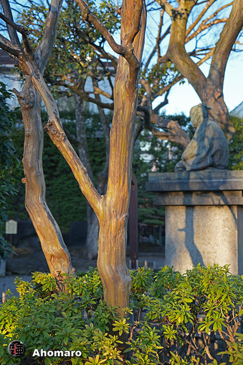 添田唖蝉坊と息子の添田知道の筆塚。人面石「唖蝉坊君」は後ろに移動されてしまいました。