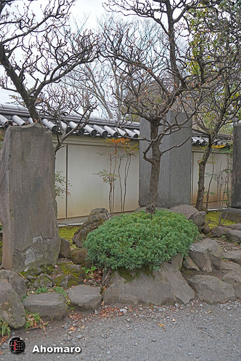 添田唖蝉坊と息子の添田知道の筆塚。人面石「唖蝉坊君」は後ろに移動されてしまいました。