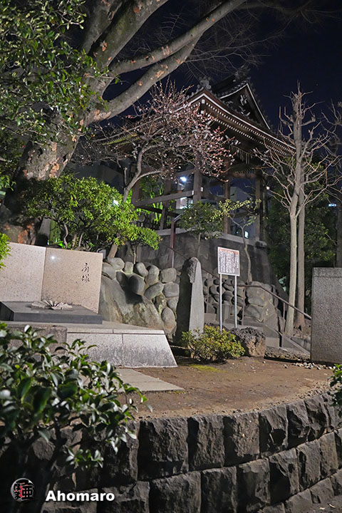 添田唖蝉坊と息子の添田知道の筆塚。人面石「唖蝉坊君」は後ろに移動されてしまいました。