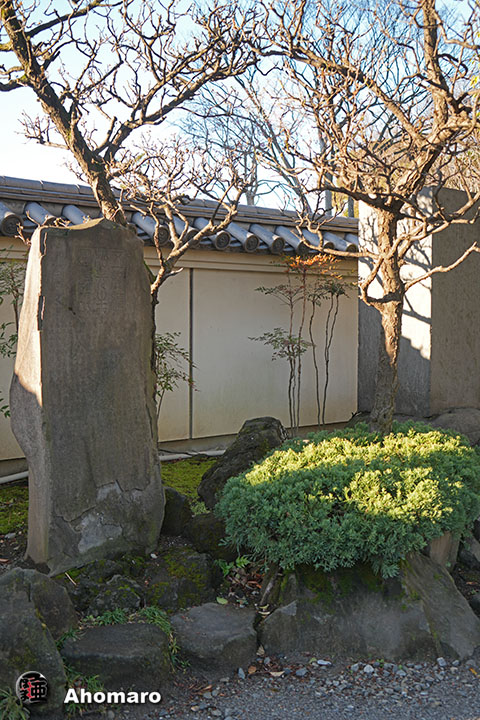 添田唖蝉坊と息子の添田知道の筆塚。人面石「唖蝉坊君」は後ろに移動されてしまいました。
