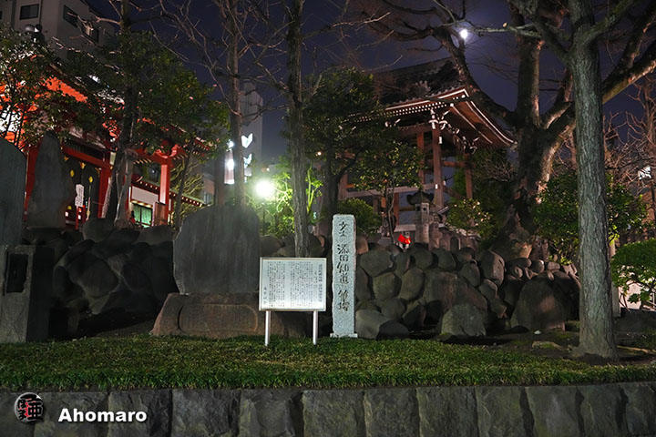 添田唖蝉坊と息子の添田知道の筆塚。人面石「唖蝉坊君」は後ろに移動されてしまいました。