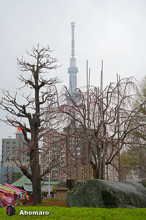 正岡子規句碑「観音で雨に逢ひけり花盛」