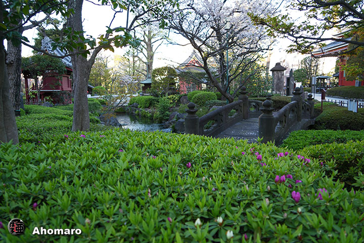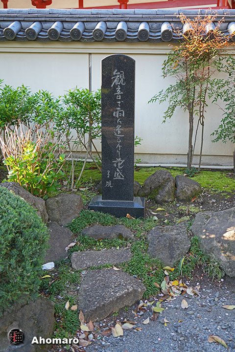 正岡子規句碑「観音で雨に逢ひけり花盛」