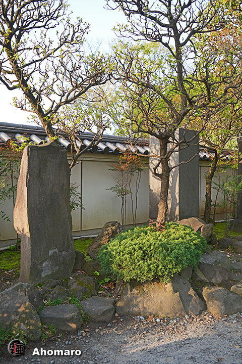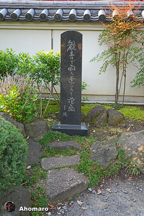 正岡子規句碑「観音で雨に逢ひけり花盛」