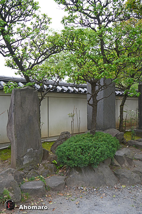 添田唖蝉坊と息子の添田知道の筆塚。人面石「唖蝉坊君」は後ろに移動されてしまいました。