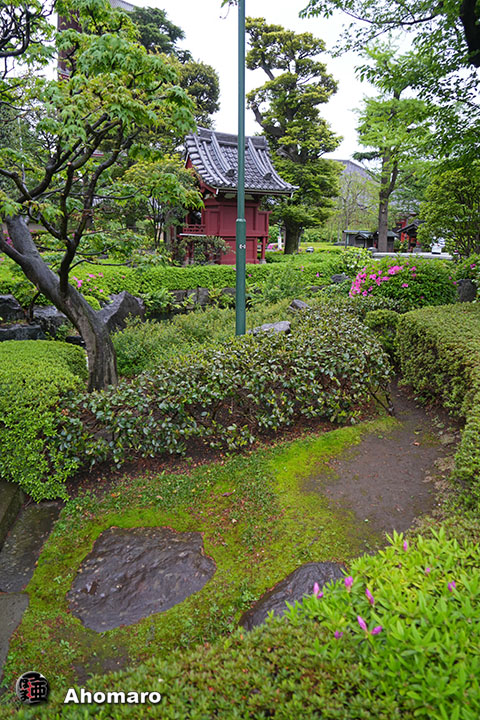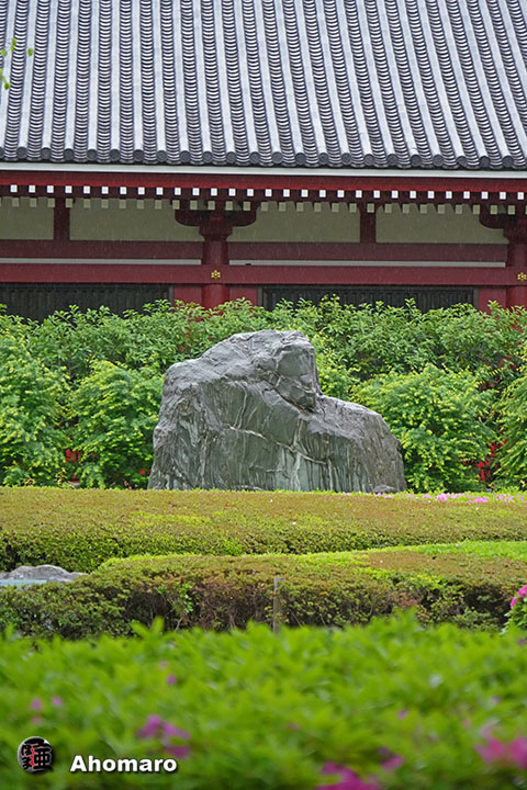 正岡子規句碑「観音で雨に逢ひけり花盛」