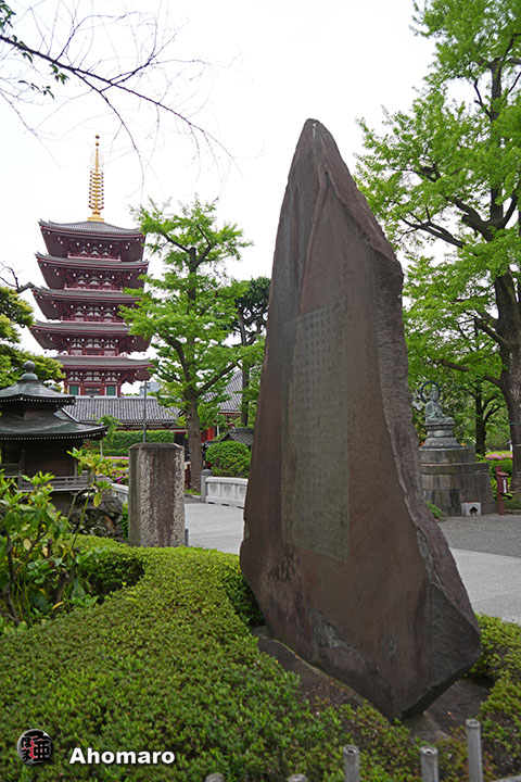 正岡子規句碑「観音で雨に逢ひけり花盛」