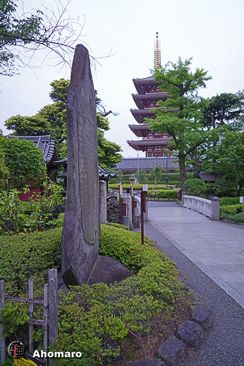 正岡子規句碑「観音で雨に逢ひけり花盛」